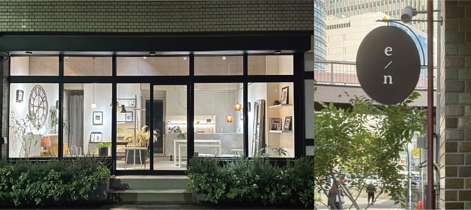 ギャラリーの目印は、縦にenを配したロゴ看板。