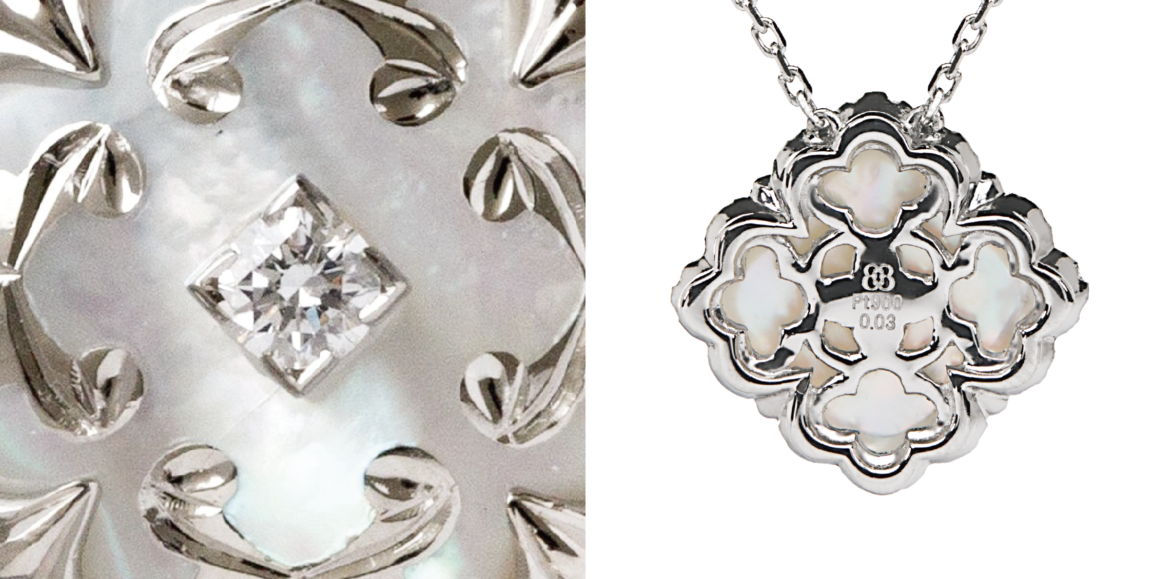 素材 :Pt900、チェーンPt850、ダイヤモンド約0.03ct、白蝶マザーオブパール